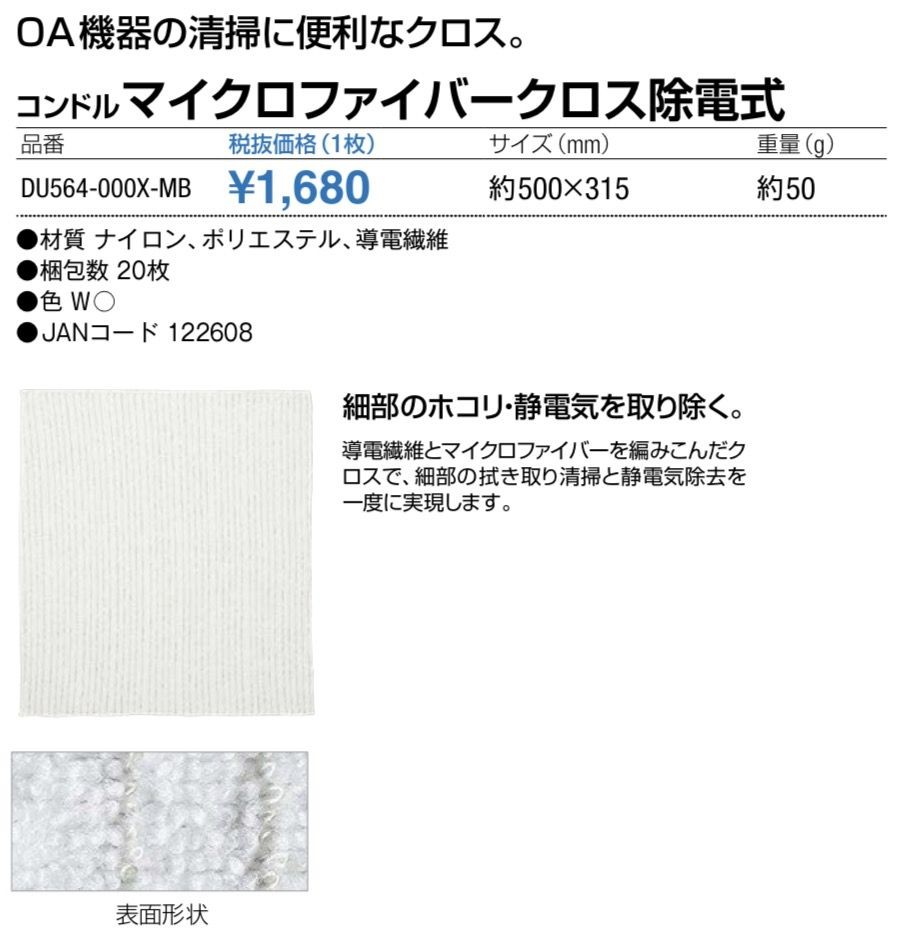 コンドル (除塵クロス)マイクロファイバークロス除電式 DU564000XMB