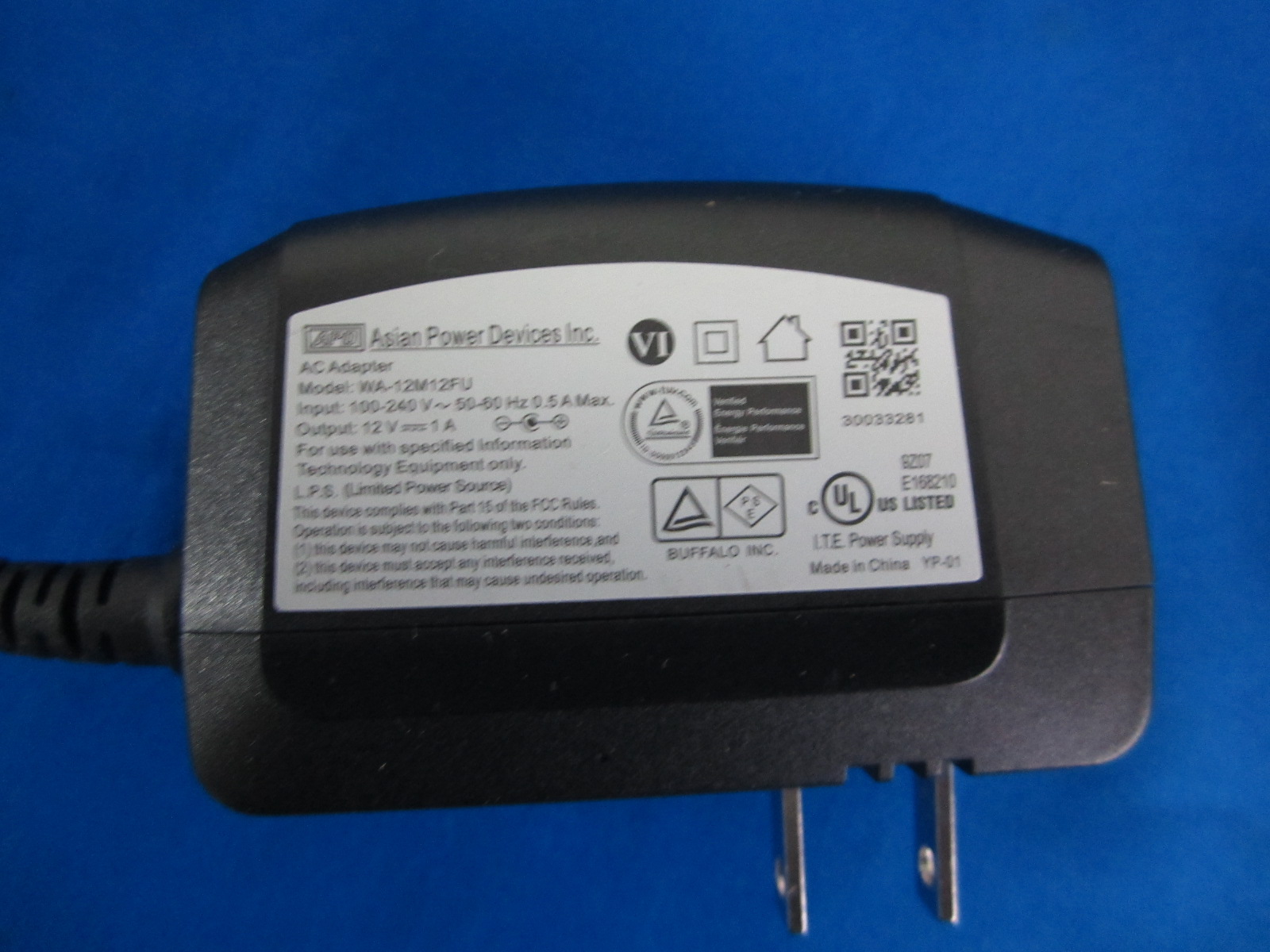 HAD-14■APD/BUFFALO 未使用に近い 無線LANルーター WHR-300HP2 等用 ACアダプター WA-12M12FU センターピン無し 動作保証