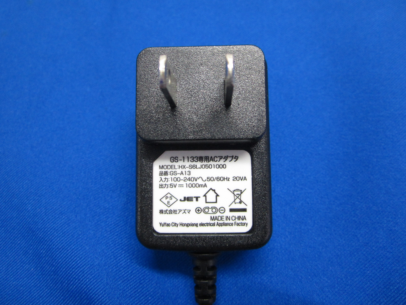 HAD-24■アズマ (GS-1133 用) メンズシェーバー用 ACアダプタ HX-S6LJ0501000 5V 1000mA 動作保証