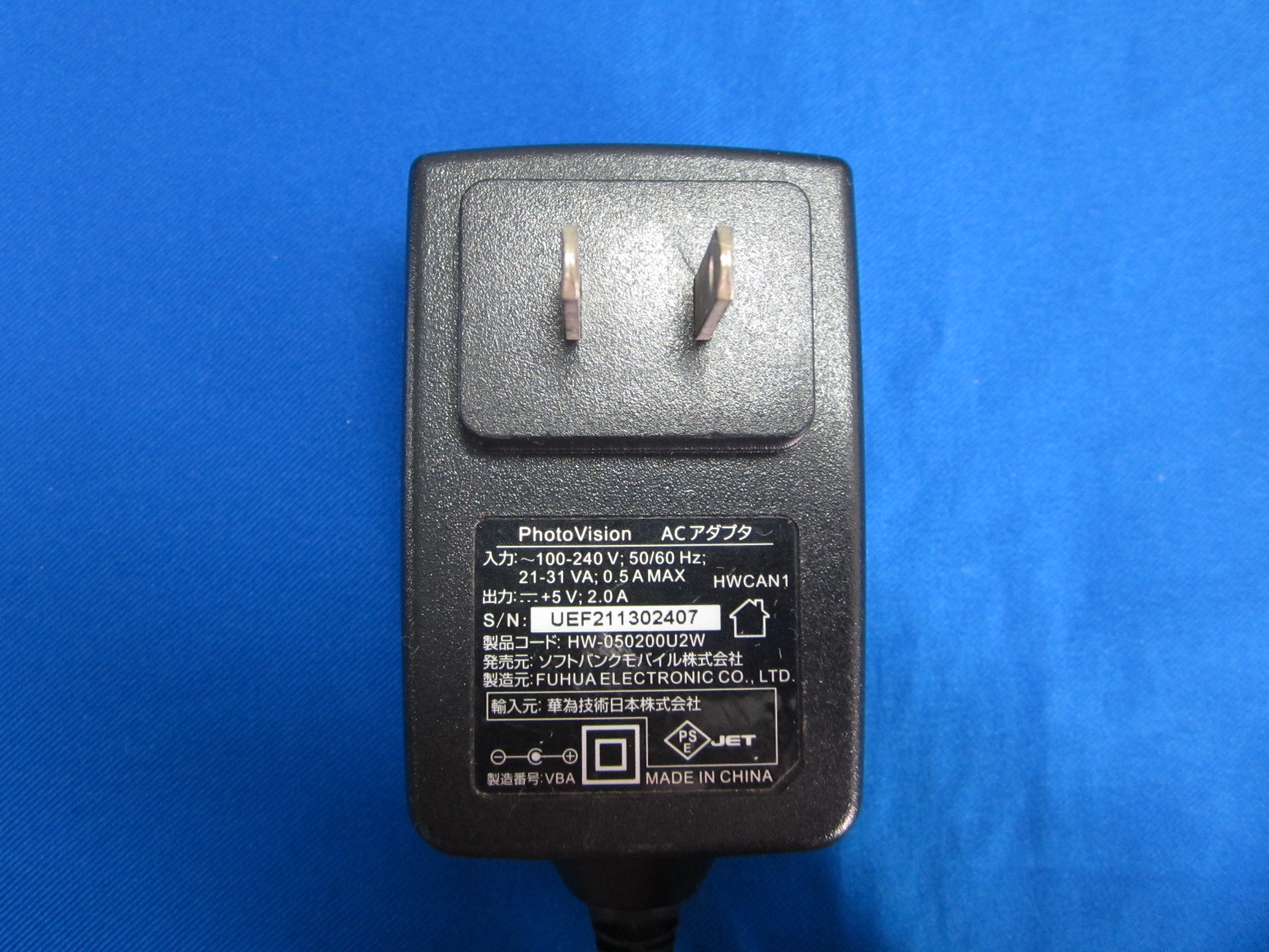 HAD-29■SoftBank PhotoVision 純正 ACアダプタ HWCAN1 HW-050200U2W 5V 2A 動作保証