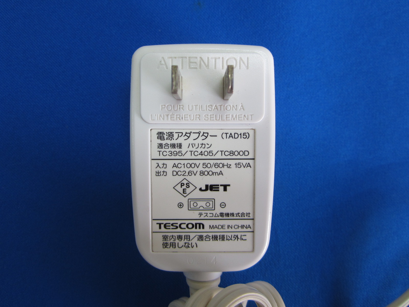 HAD-35■TESCOM バリカン スキカット TC395 TC405 TC800D 純正 ACアダプタ TAD15 DC 2.6V 800mA 動作保証