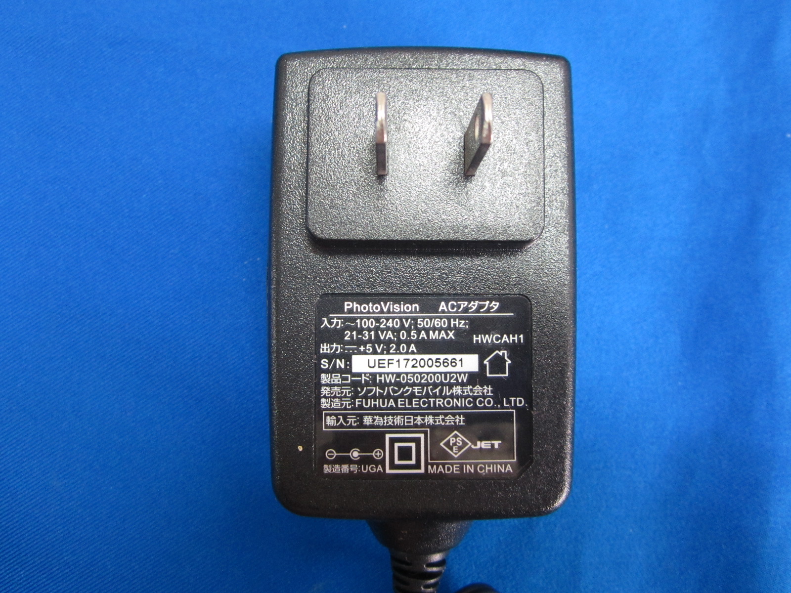 HAD-36■SoftBank フォトビジョン用 ACアダプタ HWCAH1/HW-050200U2W DC5V 2A 動作保証