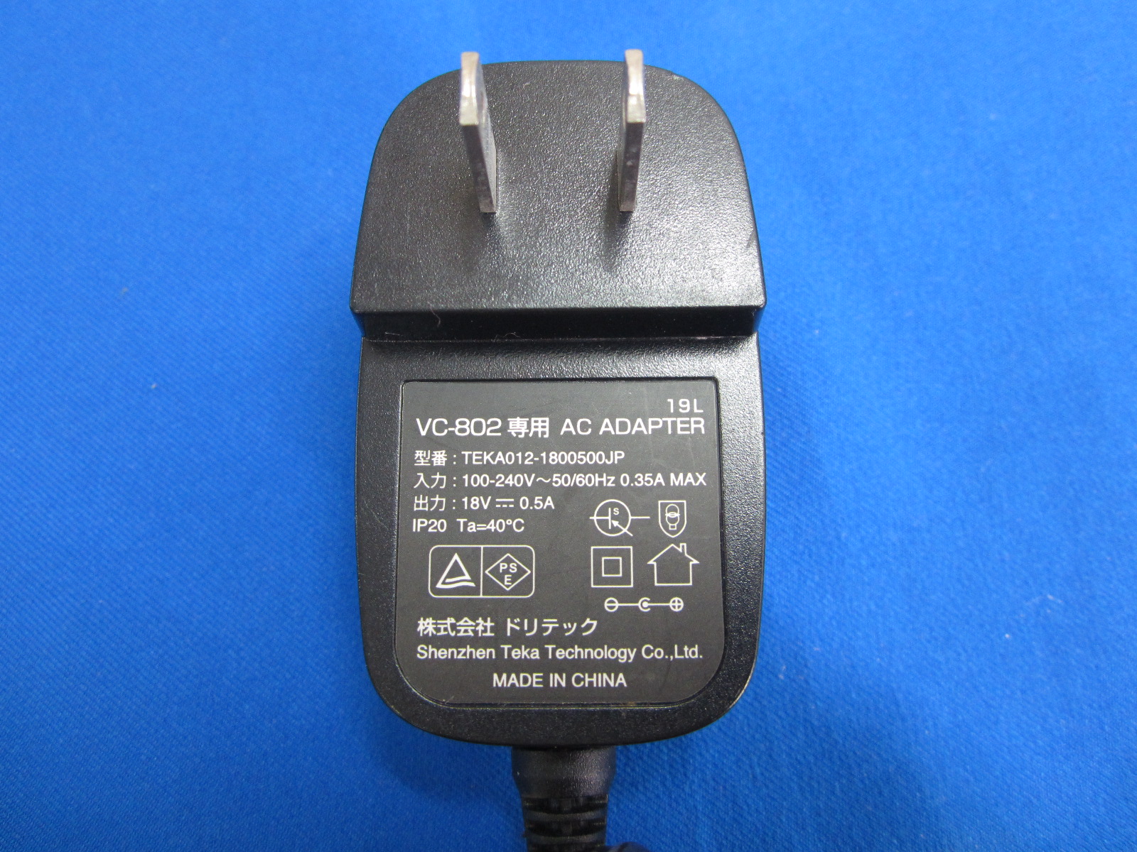 HAD-36■ドリテック VC-802用 ACアダプタ TEKA012-1800500JP 18V 0.5A 動作保証