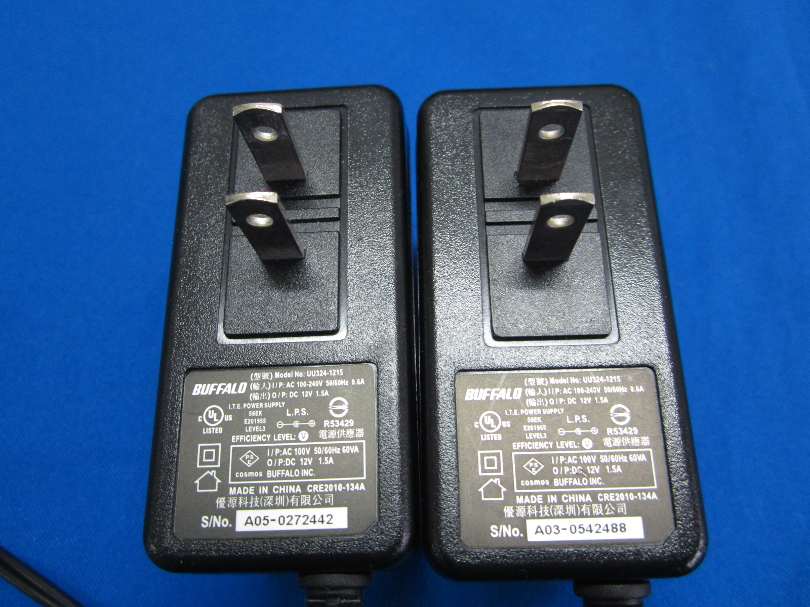 HAD-37■BUFFALO ACアダプタ 2個セット ピン有り UU324-1215 12V 1.5A 動作保証