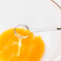 軽い力で卵白も細かく切れてなめらかに混ざり、ギザ刃部分でカラザも取れます。