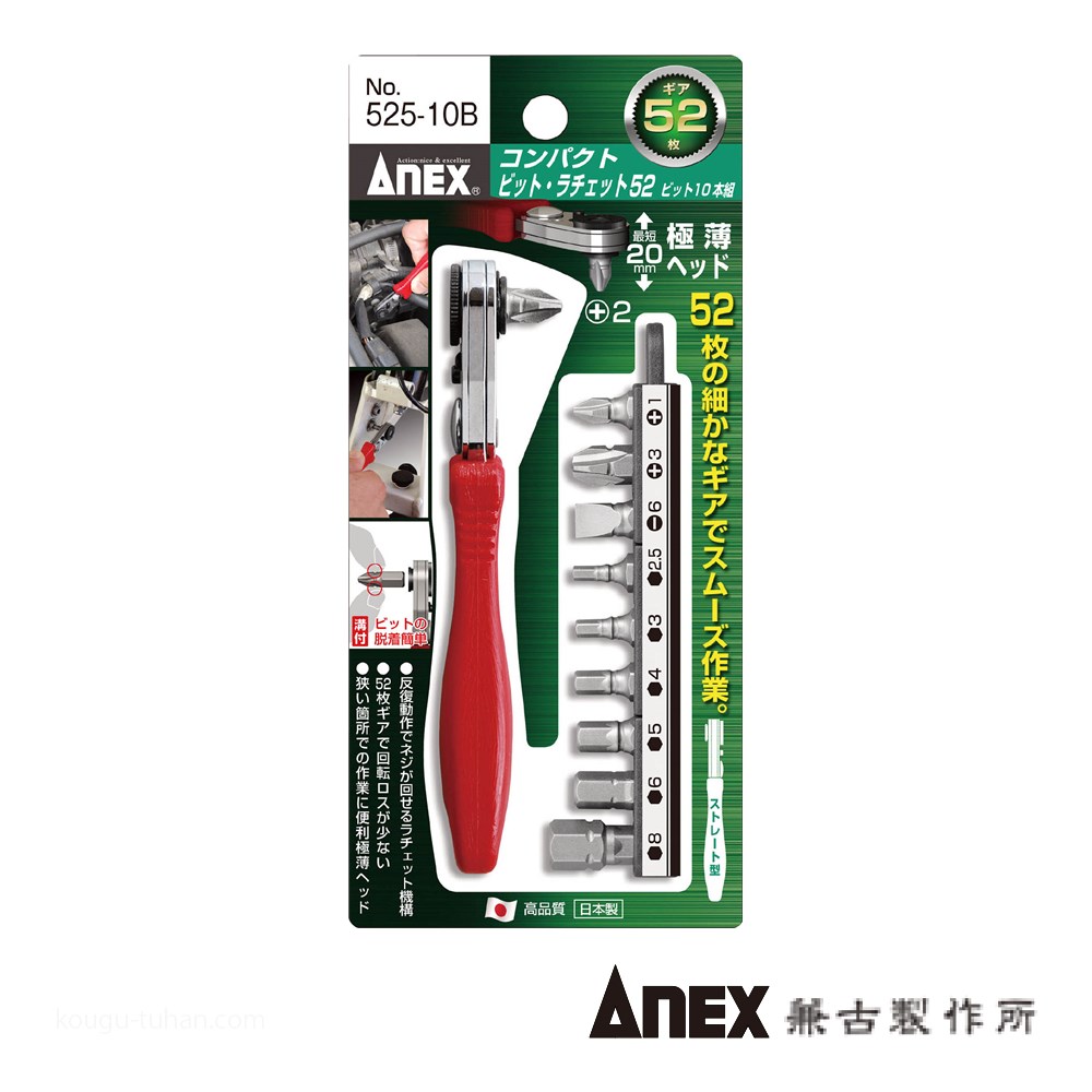 ANEX NO.525-10B コンパクトラチェット52 ビット10本組