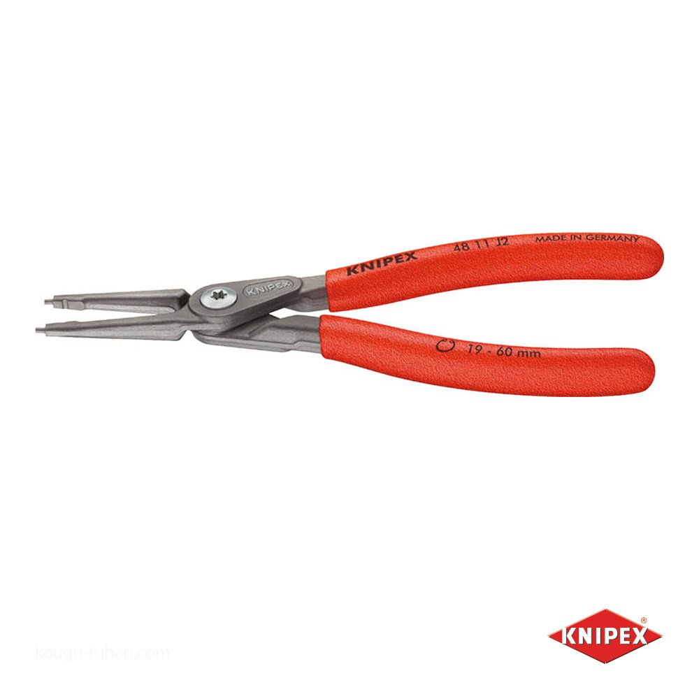 プライヤーの10倍以上です。スクリュージョイントを採用しており、大変滑らかに可動します。鍛造により大変頑丈です。先端チップはリングとの接触面積が広いため、リングを歪めず確実に保持することができます。スリムなヘッド形状により、狭い場所での作業も可能です。ストレートヘッド。高硬度ばね鋼製の先端部はポジティブ結合によって取り付け、圧着されているので、固くはまり込んだスナップリングを取り外す場合など、過度な負荷でも非常に安定しています。広い接触面と先端部のポジションにより、リングが飛び出し難くなっています。先端部には、刻み目のない高硬度ばね鋼製が使用されています。先端部は動的にも静的にも高い負荷に耐えます。開き制限ガードが付いているので、規格に合うだけでなく耐久性にも優れています。