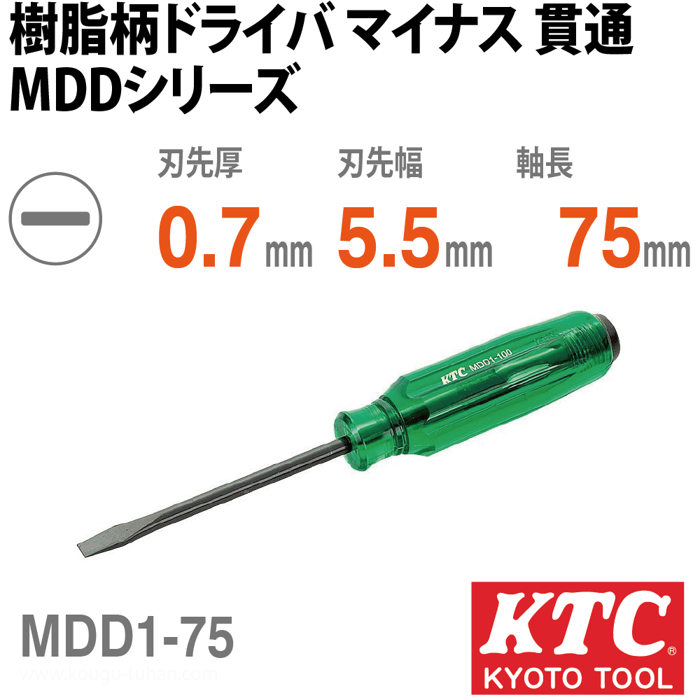 KTC MDD1-75 樹脂柄ドライバ マイナス 貫通