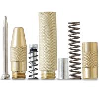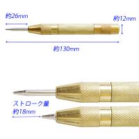 【送料無料】※ポスト投函の為、日時指定不可※お届けまでに2日程、離島の場合は1週間程、配達日数をいただきます。※厚さに制限があるため、梱包は簡易なものになります、ご了承ください。■ オートポンチ、オートマチック センターポンチ全長 約130mm重量 : 約70g本体材質 : 真鍮 先端材質 : 硬質チップ押し付けることで対象物に凹みをつけます。天井、壁、床面など作業場所を選びません。ドリルなどで下穴を空ける際に使用します。薄物鋼板、ステンレス、強化樹脂、プラスチック、木材などに幅広く使えます。点のケガキに使用できます。頭部を左右に回すことで、強弱の調整ができます。未使用の状態ですと動きが渋い場合があります。その際は、厚い雑誌の上で、何回か作動させてから使用してください。連続してパンチしたい時は、先端側のネジを少し緩めて、使用してください。新しいポンチは、スプリングが強く効いて、ノッチの戻りが悪い場合があります。ご了承ください。