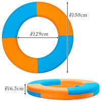 『商品説明』■子供用 浮輪 EVAフォーム製 (イーブイエー発泡軟質フォーム浮き輪) アウトレット外径およそ50cm 内径およそ29cm 厚さおよそ6.5cm 重量約0.25kg子供用のサイズ(体重40kgまでを目途に) (大型サイズ浮力約8kgf)柔らかいビート板のような素材です。使用前に、空気を入れる必要が無いので、レジャーの時に便利です。空気漏れが無いので、自作桟橋や、いかだ等にも使用可能です。高い浮力と、パンクしない特徴を持ちます。プールや海水浴場では、監視員の指示に従いましょう。管理された安全な場所で使用する浮き具です。お子様が遊ぶ際には、保護者の方が見守ってあげましょう。危険を伴う場所での使用は、必ず安全な装備をして使用して下さい。浮力が大きく、すぐに使えるので、安全用品としても大きな効果があります。使用しないときは、必ず暗所で保管して下さい。紫外線、水による劣化を考慮し、使用期間は通常3年くらいを目途に、屋外に常備する場合1年を目途にしてください。※輸送時に付いた小傷や汚れがある場合がございます、格安商品の為、ご了承くださいませ。※北海道・四国・九州へは別途送料「200円」加算されます。※沖縄県へは1個口につき別途送料「3800円」加算されます。