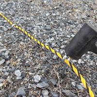 駐車場や標識として、トラロープを止めて固定するための丸形の杭です。(トラロープ別売)