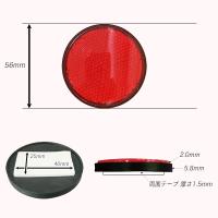 【送料無料】※ポスト投函の為、日時指定不可※お届けまでに2日程、離島の場合は1週間程、配達日数をいただきます。※厚さに制限があるため、梱包は簡易なものになります、ご了承ください。■自転車用リフレクター円形 リフレクター反射板丸型カラー : 赤、白(クリア)サイズ(赤白共通) : 直径 56mm 厚さ 7.3mm(両面テープ含まず) 重量 : 9g素材 : プラスチック自転車事故防止のための反射材(リフレクター)です。バイク、自動車、トラックの視認性工場にも。両面テープによる取り付けなので、工具不要です。両面テープは本体裏面に最初から貼付されています。視認性・反射率の高い素材で、遠くから見ても確認できるため、昼夜ともに高い安全性を確保できます。自転車への反射板の取り付けは義務付けられています。既存の反射板を破損したり、紛失した場合、または設置個所を増やしたい場合にも。反射材 反射板 反射鏡 リフレクター