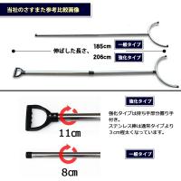 さすまた 一般タイプ軽くて、とても長く伸びる。サイズ 収納時約 115cm 使用時約 185cm又部分の最大幅約 47cm握り部分のパイプ直径 約25mm ステンレス製さすまたは、外為法上で武器に分類されるため、輸入に際し経済産業大臣の承認および、輸入許可を受けなければなりません。当社の製品は、「正規の手続きにより承認されたものです。」公共施設などでも安心して設置できます。この商品は、銃刀法による所持許可証は「必要ありません。」施設などに保管することができます。プッシュボタン式で収縮可能。最大に伸ばした時に、ロックします。対象者の腰のあたりに向けて押すように使用します。防犯目的以外の用途に使用できません。梱包は、緩衝材と共に袋に包んでのお届けとなります。