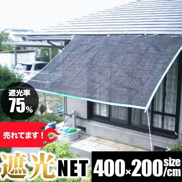 遮光ネットサイズ 約 2メートル × 4メートル ハトメ: 1mに付き一つ、全体で12個 ハトメの穴の直径: 約 13mm遮光率75%パーセント。ネット部分はPE100%。 ブルーシートなどと同様の素材です。色:ネット部分は黒、 縁取り部分は緑となります。 (太陽光反射の為、写真では白っぽく写っております)外縁部の色 : 緑。 外縁部の幅 : 38mm。遮光ネットは、耐久性、耐用年数に差がでる商品ですが、スダレや、ヨシズよりも強く、網目状なので、空気を通します。しっかり縛るところがあれば、すだれより長持ちします。シートは水に強く、強度も十分です。タープや、オーニングの代わりにも。縁側、濡れ縁でくつろぐとき、庭に子供用プールを設置するときなど、用途も様々。カーポートや車庫の側面に張って、雨やホコリを防ぐのにも便利です。エアコン室外機を遮光すると、冷房効率がアップします。※ただし、吹き出し口を塞がないように設置してください。真夏の露天風呂やコンクリートアプローチを歩行する方の素足を熱から守る利用方法でも使用されています。ロットにより、仕様が多少異なる場合がございます。