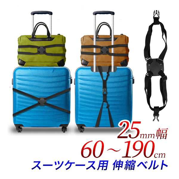 スーツケース用 伸縮ゴムベルト 1個/全長60〜100cm 2.5cm幅/キャリーオンバッグの保持に/スーツケースの開放防止に