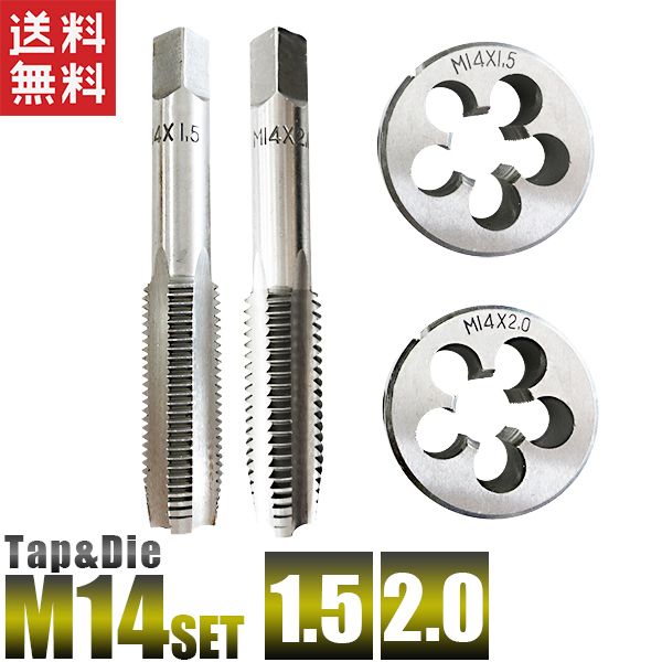 M14 タップダイス 4個組 M14x1.5 M14x2.0 タップ ダイス ねじ山 目立修正 目立て直し 送料無料