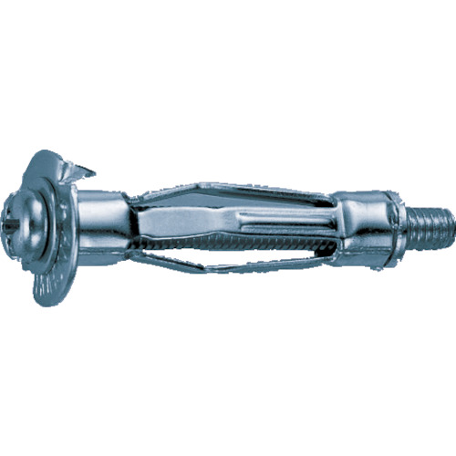 ●ねじの着脱が自在で、簡単な施工で均一に仕上がります。<br><br>●中空壁への照明器具・音響機器・棚受けの取り付けなどに。<br><br>●ねじの呼び:M4<br>●外径(mm):6.7<br>●適合板厚(mm):10〜16<br>●下穴径(mm):9<br>●ねじ長さ(mm):45<br>●引張最大荷重(kN):0.34<br><br>●スチール<br>●表面処理:三価クロメート処理<br><br>●引張最大荷重は、コンクリート強度FC21N/m[[M2]]時の値です。<br>●提供不可:SDS…金物・建築資材 ファスニングツール 中空壁用アンカー…