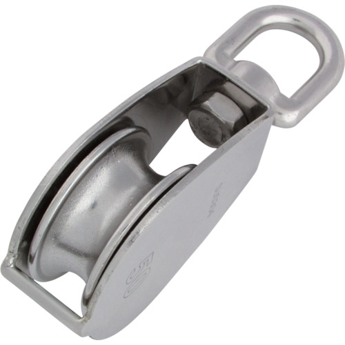 "●アイの部分がスイベルになっているのでよじれません。<br><br>●ロープを通して荷物などの吊り上げや引っ張り作業に。<br><br>●基本使用荷重(t):0.07<br>●最大使用ロープ径(mm):9<br>●車数:1<br>●車径(mm):25<br>●寸法(mm)A:82.5<br>●寸法(mm)B:30<br>●寸法(mm)C:23<br>●使用荷重(kg):70<br>●タイプ:ベケなし1車<br><br>●スイベルタイプ<br><br>●ステンレス(SUS304)<br><br>…荷役用品 吊りクランプ・スリング・荷締機 滑車…"