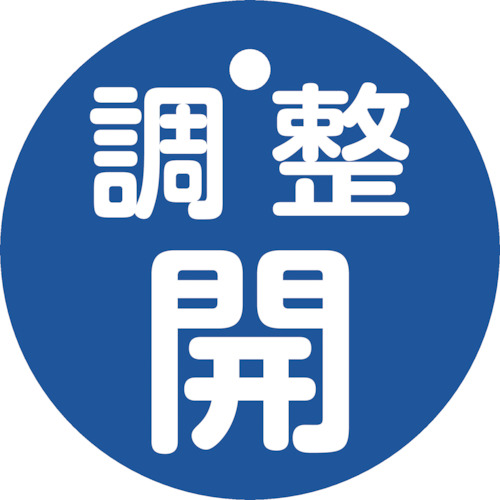 "●熱圧着一体成型(ラミ加工)により文字を封入しているため、摩擦による文字消えはありません。<br><br>●あらゆるバルブの設置場所に。<br><br>●表示内容:調整開<br>●縦(mm):50<br>●横(mm):50<br>●厚さ(mm):2<br>●色:青<br>●穴径(mm):4<br>●外径(mm):50<br>●取付方法:吊り下げタイプ(ボールチェーンなど別売)<br><br>●両面表示<br>●ラミネート加工<br>●上部穴×1ヶ所<br>●取付方法:吊り下げタイプ(ボールチェーンなど別売)<br><br>●ポリエチレンテレフタレート(PET)<br><br>●取付金具は別売です。…工事・照明用品 管工機材 バルブ・配管識別用品…"