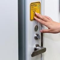 ●工場・ホテル・エレベーター・一般家庭・事務所などのドアをはじめ、あらゆる金属部分に貼り付け、触れるだけで体に溜まった静電気を除去します。