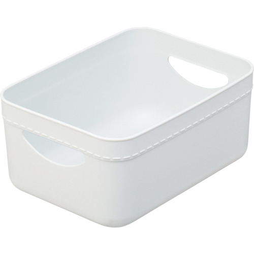 "●柔らかめPEを使用し、布のような柔らかいソフトな触感に仕立てました。<br>●布地を連想させる粗目のシボを採用し、マットな印象でナチュラルインテリアともマッチします。<br>●布製品特有のステッチデザインで柔らかな布製品のテイストを再現しました。<br>●別売りのフタを付ければスタック可能です。<br>●レギュラーの上にハーフが2個乗せられます。<br>●カラーボックス内、パントリー内の収納に最適。<br><br>●棚の小物整理に便利です。<br>●多目的収納・小物収納に。<br><br>●容量(L):4.5<br>●色:ホワイト<br>●外形寸法(mm)間口:255<br>●外形寸法(mm)奥行:185<br>●外形寸法(mm)高さ:115<br>●有効内寸(mm)間口:240<br>●有効内寸(mm)奥行:170<br>●有効内寸(mm)高さ:110<br>●タイプ:ハーフ<br>●耐荷重(kg):2.4<br><br>●有効内寸(約)(cm):幅24×奥行…物流・保管用品 収納用品 カラーボックス…"