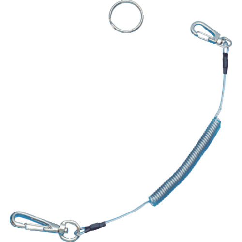 "●ポリウレタンコードにステンレスワイヤを芯材として使用し耐久性に優れています。<br>●ロープ径が細く柔軟性に優れ、コイル形状の復元がスピーディーです。<br>●ラチェットレンチ・モンキーレンチなど、接続する穴のある工具に最適です。<br><br>●工具の落下防止に。<br><br>●色:透明<br>●最大使用可能質量(kg):0.5<br>●芯径(mm):0.8<br>●コード径(mm):2.0<br>●自然長(mm):310<br>●最大長さ(mm):1100<br>●径(mm):2<br><br>●最大使用荷重:0.5kg<br><br>●芯:ステンレスワイヤ<br><br>●リング<br><br>…保護具 墜落・落下防止用品 安全ロープ…"