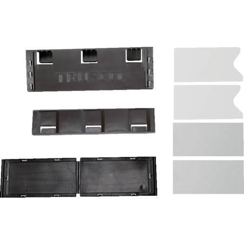 "●トラスコスチール製ボルトレス棚(М1〜М5およびTSUG、TUG型)のビーム(前後桿)に差し込むだけです。<br><br>●トラスコスチール製ボルトレス棚(М1〜М5およびTSUG、TUG型)のビーム(前後桿)に差し込むだけの見出しサインです。<br><br>●間口(mm):200<br>●奥行(mm):70<br>●高さ(mm):65<br>●色:ブラック<br><br>●ビーム差し込み式<br><br>●ポリプロピレン(PP)<br><br>●取付用アタッチメント、カード2枚<br><br>…物流・保管用品 物品棚 中量棚…"
