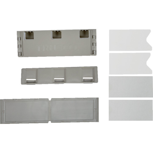 "●トラスコスチール製ボルトレス棚(М1〜М5およびTSUG、TUG型)のビーム(前後桿)に差し込むだけです。<br><br>●トラスコスチール製ボルトレス棚(М1〜М5およびTSUG、TUG型)のビーム(前後桿)に差し込むだけの見出しサインです。<br><br>●間口(mm):200<br>●奥行(mm):70<br>●高さ(mm):65<br>●色:ネオグレー<br><br>●ビーム差し込み式<br><br>●ポリプロピレン(PP)<br><br>●取付用アタッチメント、カード2枚<br><br>…物流・保管用品 物品棚 中量棚…"