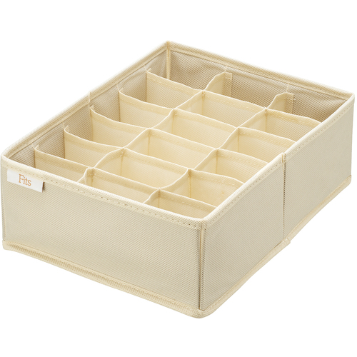 "●衣類引出し内を整理整頓するための布製ボックスです。<br>●靴下やハンカチ、子供用グッズ(スタイやよだれカバー)など小物の整理におすすめです。<br>●フィッツケースシリーズを仕切るのに便利です。<br><br>●収納用品として。<br><br>●容量(L):7.6<br>●色:アイボリー<br>●外形寸法(mm)間口:240<br>●外形寸法(mm)奥行:330<br>●外形寸法(mm)高さ:110<br>●サイズ:L<br>●仕切りマス數:18<br><br>●本体:ポリエステル、ポリプロピレン不織布<br><br>…物流・保管用品 収納用品 カラーボックス…"