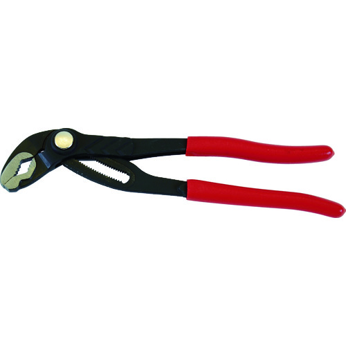 ●プッシュボタンにより、素早く簡単にアゴの幅を細かく調整できるワンタッチ機能付です。<br>●当社同等品と比べて20%UPのワイドな口開きを実現しました。<br>●ジョイント部は横方向へのブレを防止する3枚合わせ(ボックスジョイント)です。<br>●アゴの開きは片手で調節が可能です。<br>●口幅を最大に調節して握っても、ハンドルの間にクリアランスを確保する指詰めストッパー付です。<br>●少ない力でパイプやナットを確実につかむ平行四辺形のアゴ形状です。<br>●入念な焼入れ処理が施されたつかみ面の硬度は約HRC61で、耐摩耗性が高く、確実なグリップを発揮します。<br>●てこの原理を最大限発揮するデザインで高いグリップ力を発揮します。<br><br>●パイプ・ナットの締め付け、取り外しに。<br><br>●全長(mm):250<br>●最大口開き(mm):54<br>●調整(段階):23<br><br>●本体:特殊工具鋼<br>●グリップ:PVCコンパウンド(塩…手作業工具 水道・空調配管用工具 ウォーターポンププライヤー…
