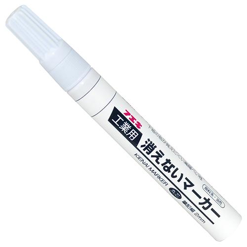 はじきやすい素材、油の付着した場所にも書けます。[用途]木材・化粧合板・塩ビ管・鉄鋼材・ガラス・プラスチックなどへのマーキング。[機能]下地色の影響を受けない鮮明な筆記線です。顔料系なので、耐光性・耐水性に優れています。書いた箇所がくっきり鮮明です。[仕様]●中字・裸。●筆記線:2mm。●丸芯。●色:白。●不透明油性。[材質]●本体:アルミ。[注意事項]使わないときはキャップをしてください。…
