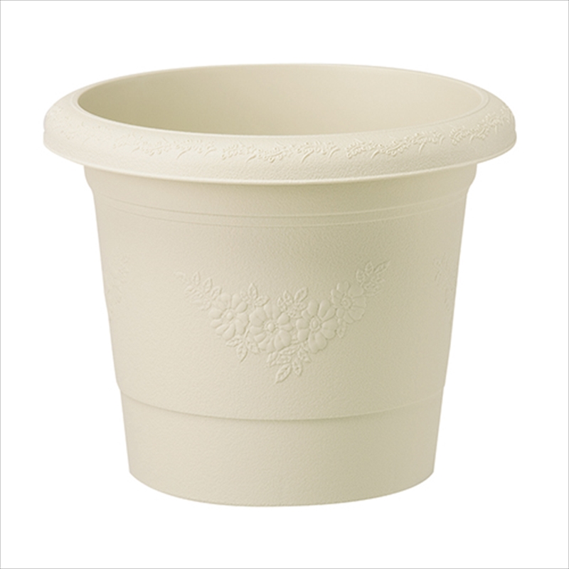 飽きのこない上品なデザインのポットです。[用途]コンテナポット/プランター。[機能]花柄のレリーフをあしらった丸プランターです。バラや花木を育てるのに最適です。[仕様]●サイズ:径250×高さ230mm。●色:アイボリー。●容量:5.0L。●規格:25型。[材質]●ポリプロピレン。…