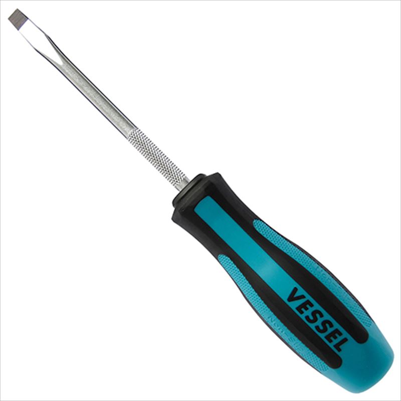 ネジをがっちり捉えて離さない、プラス刃先はジョーズフィット加工です。ネジの締め付け緩め作業。軸部のローレット加工は、早回し時の指の滑り止め、木やボードの穴を広げる時に使えて便利です。クロームバナジューム鋼を使用、全身焼入れを施しています。●サイズ:-6mm。●軸長:100mm。●全長:210mm。