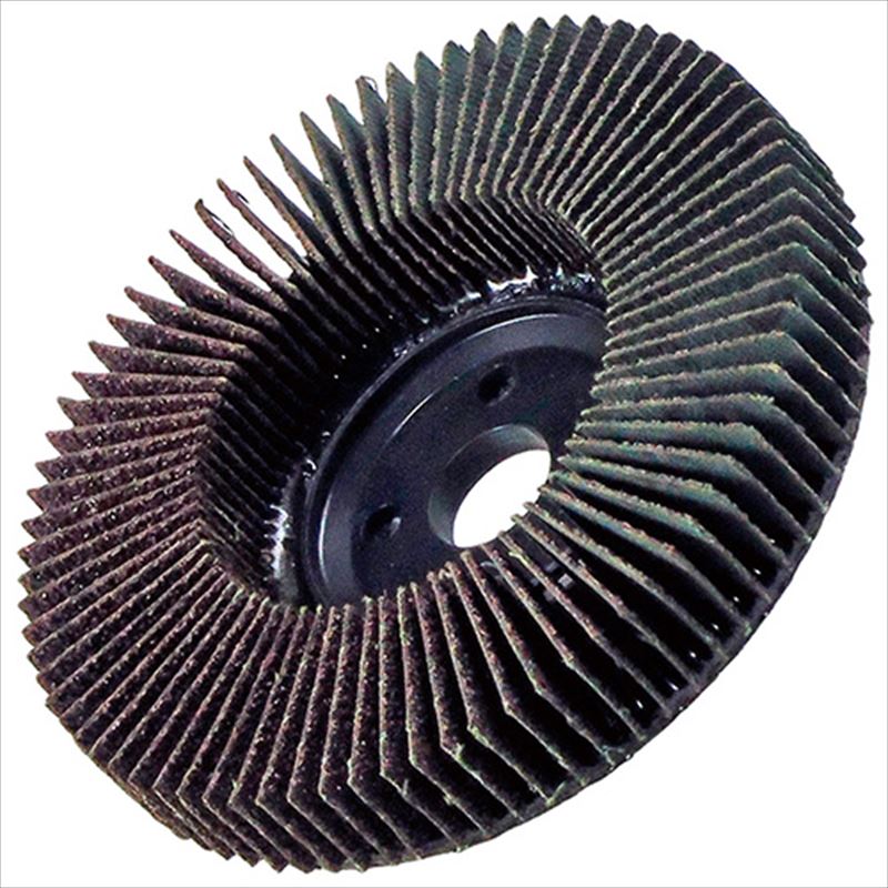 直角に立てた研磨布がしなり、削り過ぎず柔らかい研磨ができます。[用途]金属だけでなく、木材の表面研磨、ケバ取り、木目出し。[機能]研磨布が端からすり減り、目詰まりがありません。[仕様]●粒度:40。●外径(mm):100。●穴径(mm):15。●最高使用回転数(min-1):12000。[材質]●砥材:アルミナ。…