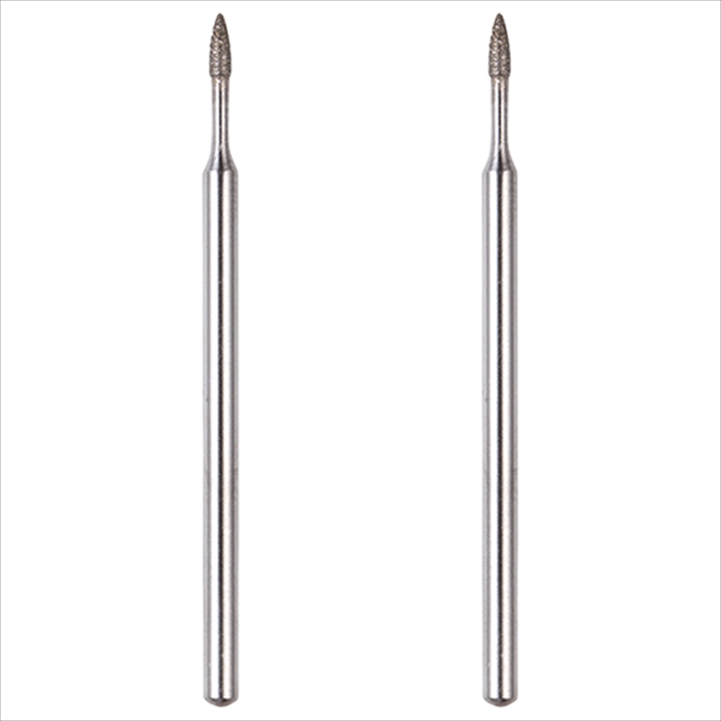 ガラス、セトモノの彫刻、研削用ダイヤモンドビットです。[用途]ガラス・瀬戸物の彫刻、研削用ダイヤモンドビット。[機能]ガラス、セトモノの彫刻・研磨に最適です。[仕様]●シャフト径:2.35mm。●サイズ:先端部分・径1.6×5mm。●先端形状:矢型。●最高対応回転数:150000min-1(回/分)。●適合機種:No.28400・28473・28511・28515・28525・26800・26700・28600。●メーカー品番:No.28215。[材質]●先端:ダイヤモンド電着。●シャフト:鉄。[付属品内容]●セット内容:ダイヤモンドビット(矢)×2。…