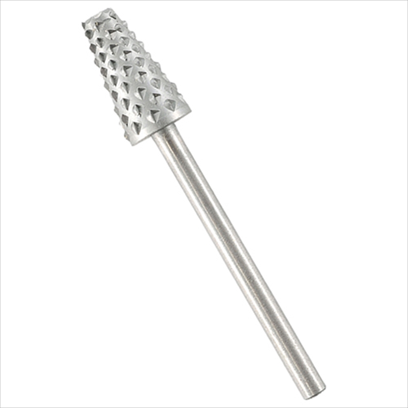 木材の荒削りカッターです。[用途]木材の荒削り。[機能]木工の荒削り、鉛・ソフトメタルの研削に最適な回転ヤスリです。[仕様]●サイズ:先端部分・高さ12×上辺径4mm、下辺径8mm。●シャフト径:3.0mm。●最高対応回転数:10000min-1(回/分)。●適合機種:No.28400・28473。●メーカー品番:No.28708。[材質]●鋼材。…