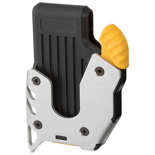 付属のアタッチメントをKDSコンベックスに取り付けると腰廻りに携帯できます。胴ベルト右側取付け用です。負荷の掛かる部位にアルミパーツを採用し樹脂製に無い強度を実現しています。ホコリや粉塵が詰まりにくい機構を採用しています。プロネクストLiteを除くKDS19mm幅以上のコンベックスに対応しています。