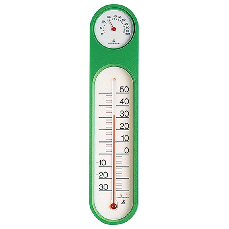 温度と湿度を同時に測定でき、健康管理や省エネに役立ちます。[用途]ご家庭・教室・オフィスでの温度・湿度管理用。[機能]どんなお部屋にもマッチするカラフルなデザインになっています。エアコンの設定目安表示があるので無駄なく快適な温度管理ができます。[仕様]●本体サイズ:幅67mm×高さ295mm×奥行19mm。●重量:100g。●精度(温度):±2度。●精度(湿度):35%〜75%(±5%)・それ以外(±10%)。●測定範囲:(温度)-30度〜50度・(湿度)0〜100%。●1目盛:(温度)2度・(湿度)5%。●色:グリーン。[材質]●本体:ポリスチレン樹脂。●ガラス。[注意事項]用途以外使用しないでください。落下等による衝撃を与えないでください。…