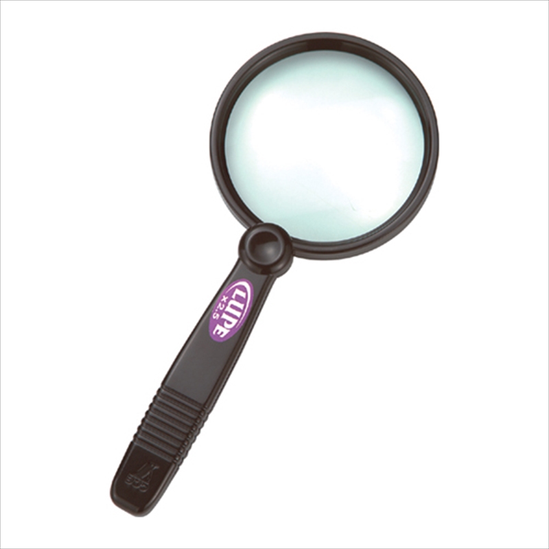 くっきりと見やすく、握りやすいルーペです。[用途]新聞、辞書等の細かい文字を見る時に使用するルーペ。[機能]キズのつきにくい高級ガラスレンズを使用しています。持ちやすい形状のグリップです。[仕様]●本体サイズ:幅83mm×高さ192mm×奥行17mm。●重量:96g。●レンズ径:75mm。●レンズ倍率:2.5倍。[材質]●枠:プラスチック。●柄:プラスチック。●レンズ:ガラス。[注意事項]ルーペで太陽光源を絶対に直接見ないで下さい。…