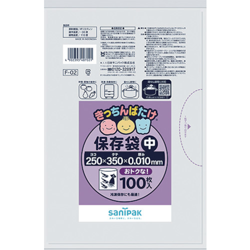 サニパック F-02きっちんばたけ保存袋(中)半透明100枚 F-02-HCL