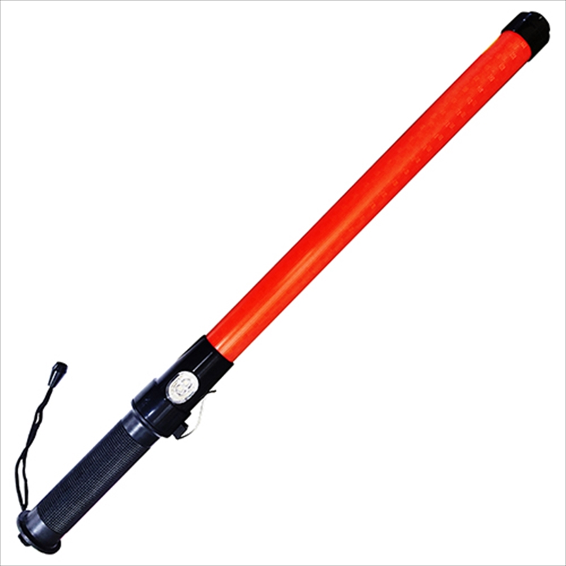 警笛付LED指示灯なので光と音で誘導できます。[用途]工事現場や会場等の警備、夜間の防犯パトロール、人や車の交通整理。[機能]大音量95dbの警笛機能付きです。点滅→点灯→手元ライトの3Wayモードです。明るい50ルーメン白色手元ライト付きです。携帯に便利なベルトクリップ、落下防止ハンドルストラップ付です。[仕様]●サイズ:(全長)550mm・(ライト部)310×径30mm・(グリップ部)115×径33mm。●光源:赤色LED×6灯・白色SMD×2灯。●明るさ:白色SMD50ルーメン。●実用点灯時間:(点滅)54時間・(点灯)28時間。●警笛音:90〜95db。●防水保護等級:IPX3。●質量:約290g。●電源:単2形アルカリ乾電池×2本。[材質]●赤色ライト部:PVC。●グリップ・先端部:ABS。[注意事項]乾電池の液が目に入ったときは、きれいな真水ですぐに洗い流してください。また医師の診断を受けてください。失明や目の障害の原因となることがあります。ライトを直視しないでください。また他人や動物に向けて照らさないでください。目の障害の原因となることがあります。警笛…
