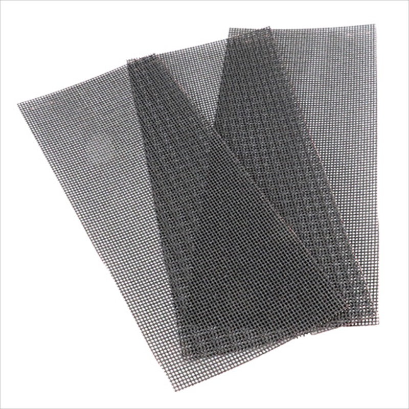 両面使えて、目詰まりしにくいメッシュタイプのヤスリです。[用途]木材・金属等の研磨、サビ・汚れ落とし。[機能]基材がアミ目形状なので目詰まりしにくく、研削力が高く、長寿命です。そのままでも、水をかけながらでも使えます。あて木を使うと作業がしやすくなります。[仕様]●サイズ:93x230mm。●粒度:C120。●入数:3枚入り。[注意事項]必ず目立たない部分で試してからご使用ください。アルコール・シンナー等の有機溶剤と併用しないでください。必ず保護手袋を着用してください。…