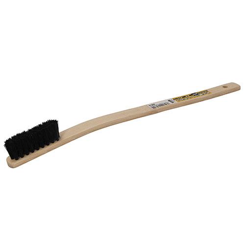 柄が適度に曲がっているため、平面だけではなく、曲面などにも使いやすい形状です。毛が抜けにくいよう、平線植え込みタイプを採用しています。