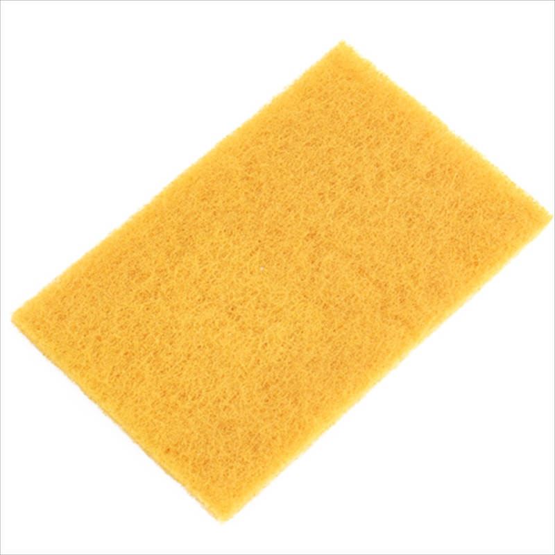 オープン構造のナイロン不織布使用で、目詰まりしにくく、安定した研磨が可能です。[用途]金属部品のクリーニング、シンクの汚れ取り、白木の表面の汚れ落とし。[機能]柔軟性と弾力性があり、曲面にもなじみやすく、均一な研磨が可能です。水や油にも強く、工業用洗剤などとの併用もでき、より効率よく作業が可能です。太いナイロン繊維の不織布内部まで砥粒が含浸されているので、一定の研磨力が持続します。[仕様]●サイズ:150X230mm。●極細目。●粒度:1500。●カラー:黄。[注意事項]ご使用前にはさしつかえない部分でお試し下さい。光沢のあるもの、また傷がつくと困る場所には絶対に使用しないでください。エアー工具、電動工具などへ取り付けてのご使用はしないでください。…