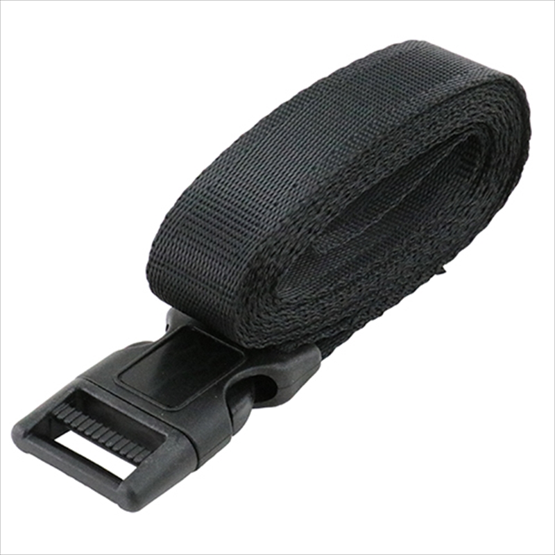 ●ベルト幅:25mm。●全長:2m。●最大使用力:0.2kN(20kg)、破断荷重:0.8kN(81kg)。●バックルの種類:ワンタッチバックル。●端末の仕様:エンドレス。●ベルトカラー:ブラック。