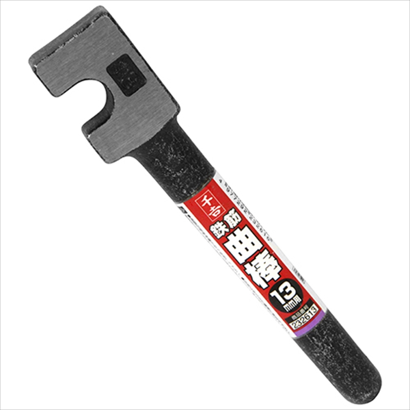 鉄筋を曲げるのに使用します。[用途]鉄筋の曲げ作業。[機能]曲板を使用し、13mm鉄筋を曲げることができます。[仕様]●13mm鉄筋用。[材質]●機械構造用炭素鋼(S53C)。[注意事項]周囲の安全を確かめて使用して下さい。鉄筋のサイズにあった曲板・曲棒を使用し、曲板は取付台に確実に取付て下さい。曲板の支点のゆるみ・抜け・変形がないことを確かめて下さい。…