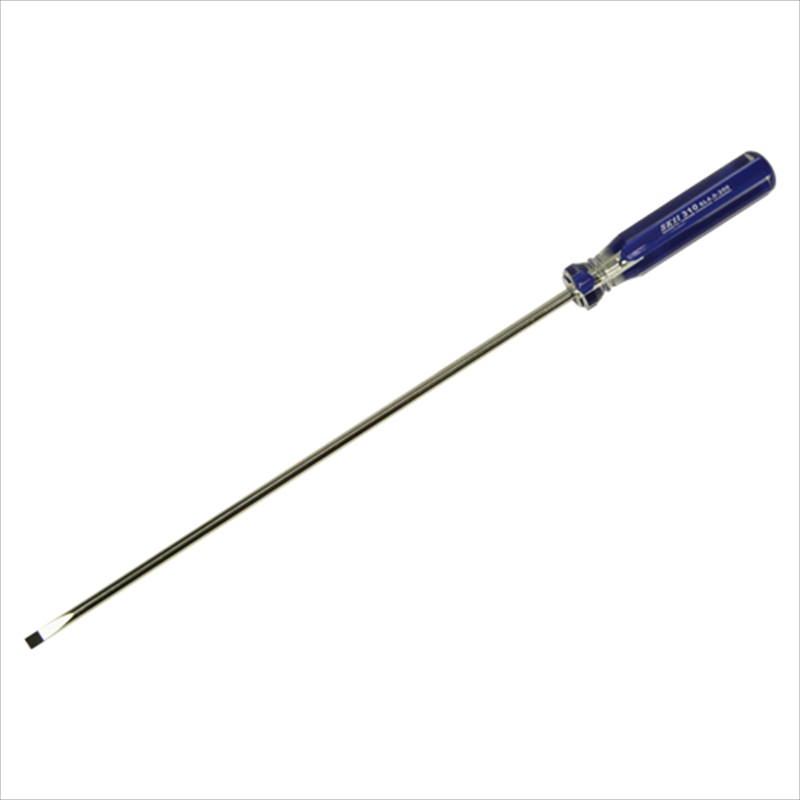 耐油性、耐衝撃性に優れたアセテート樹脂ハンドルです。[用途]ネジの締め付け、緩め作業。[機能]刃先はブラックポイント加工で、メッキ厚の影響が少なく高精度です。狭い箇所や細いネジ径の作業に適した細軸タイプです。[仕様]●刃先:-4.0mm。●軸長:200mm。●軸径:4mm。●グリップ径:16mm。●軸:全身焼入。●先端マグネット入。●刃先厚:0.5mm。[材質]●軸:クロームバナジウム鋼。●ハンドル:アセテート樹脂。[注意事項]電気の流れているものには使用しないで下さい。ハンマー等で衝撃を加えないで下さい。ネジのサイズに合ったものを使用して下さい。[その他]必要以上のトルクを加えないで下さい。本来の目的・用途以外での使用はしないで下さい。…