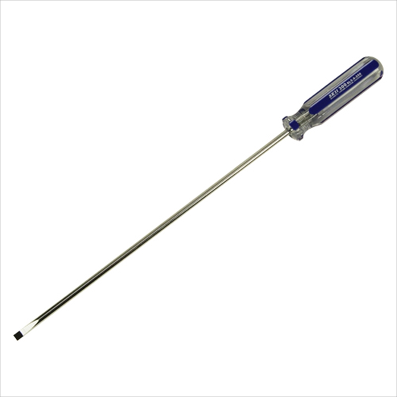 耐油性、耐衝撃性に優れたアセテート樹脂ハンドルです。[用途]ネジの締め付け、緩め作業。[機能]刃先はブラックポイント加工で、メッキ厚の影響が少なく高精度です。[仕様]●刃先:-5.0mm。●軸長:250mm。●軸径:5mm。●グリップ径:22mm。●軸:全身焼入。●先端マグネット入。●刃先厚:0.8mm。[材質]●軸:クロームバナジウム鋼。●ハンドル:アセテート樹脂。[注意事項]電気の流れているものには使用しないで下さい。ハンマー等で衝撃を加えないで下さい。ネジのサイズに合ったものを使用して下さい。[その他]必要以上のトルクを加えないで下さい。本来の目的・用途以外での使用はしないで下さい。…