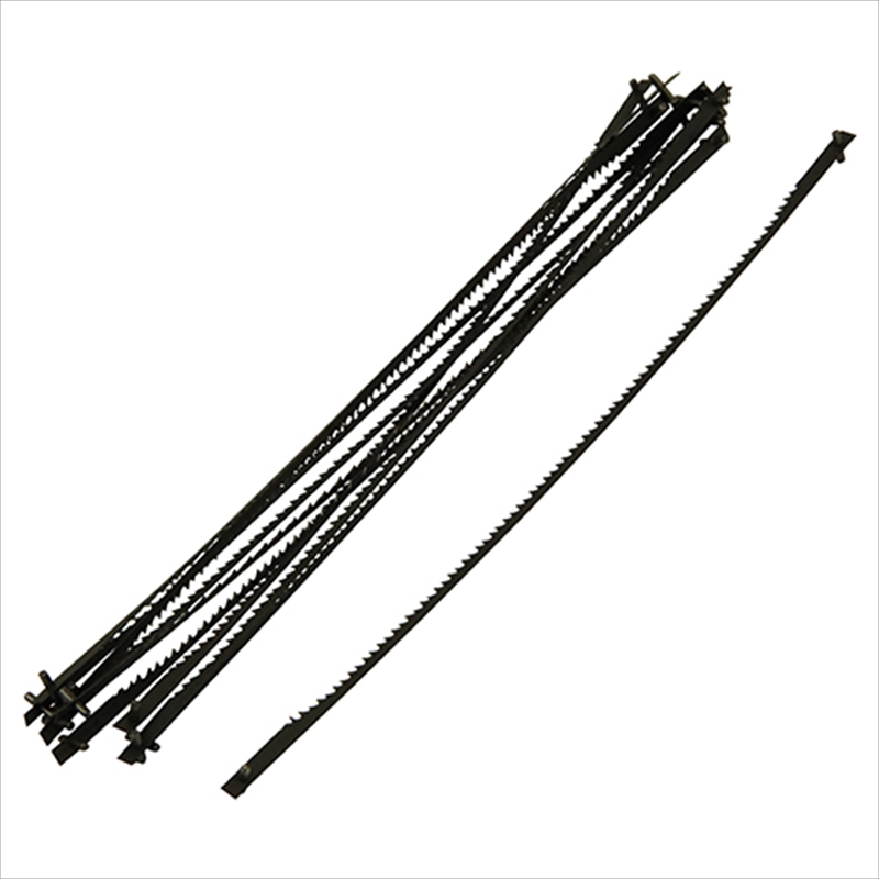 電動糸鋸交換刃です。[用途]木工曲線切用。[機能]厚さ3〜15mmまでの細かい曲線切りに最適です。[仕様]●10本入。●全長:約133mm。●厚み:0.25mm。●幅:2.4mm。●山数:78。●ピンエンドタイプ。[注意事項]不適切な取り扱いは重大事故につながりかねません。電動本機の取り扱いに関してはメーカー取り扱い説明書をよく読み、安全に使用して下さい。使用中は保護メガネ、保安帽、防振手袋など安全具を着用してください。[その他]能力以上の厚さの材料への使用は止めてください。加工物が振り回されないようにしっかり保持して下さい。お子様の手の届くところ、温度が急変するところには保管しないで下さい。…