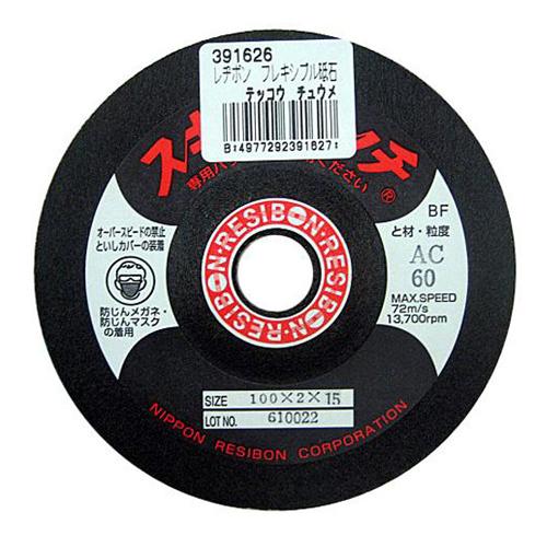 ●サイズ(外径×厚さ×孔径):100×2×15mm。●粒度:60。●と材粒:AC。●最高使用周速度:72m/s。